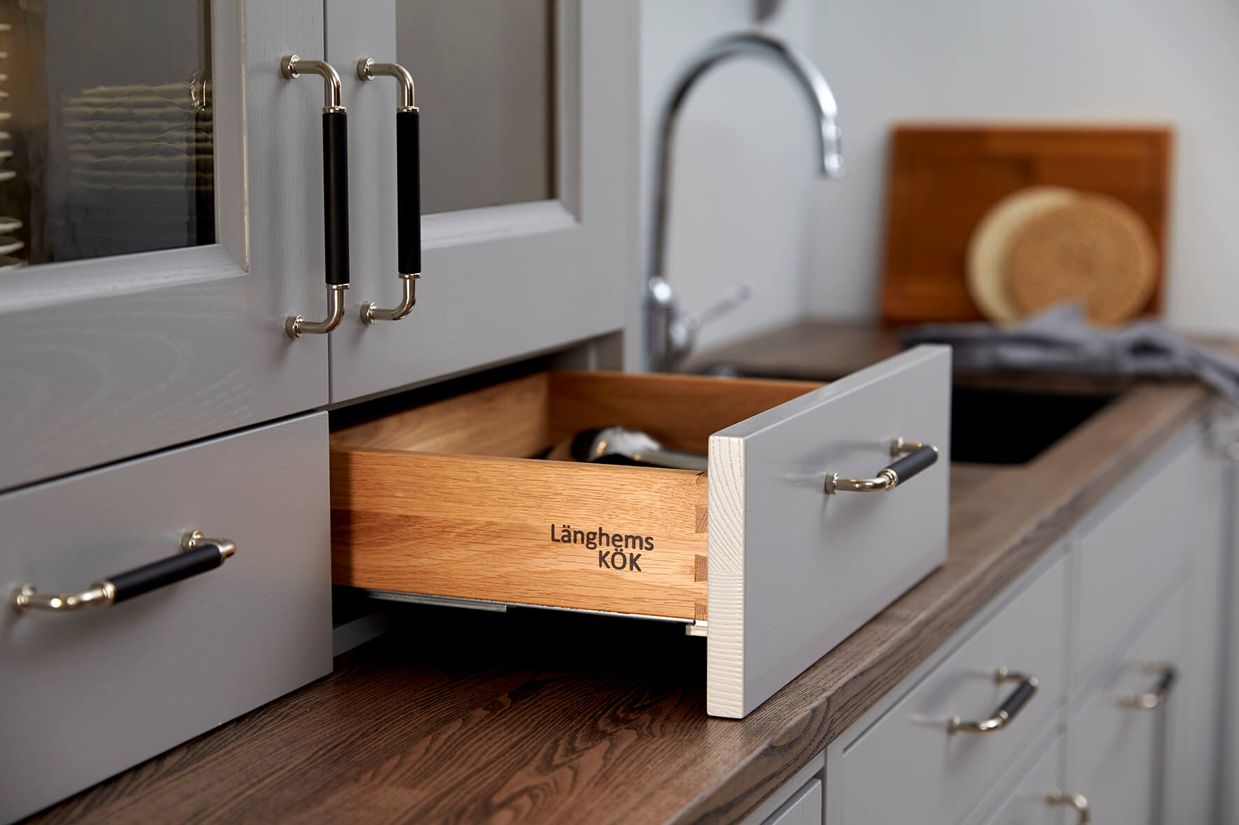 Låt tillbehören fullända ditt Länghemskök. Läs mer om vår köksinredning och våra tillbehör för ett stilfullt, slitstarkt och praktiskt kök.